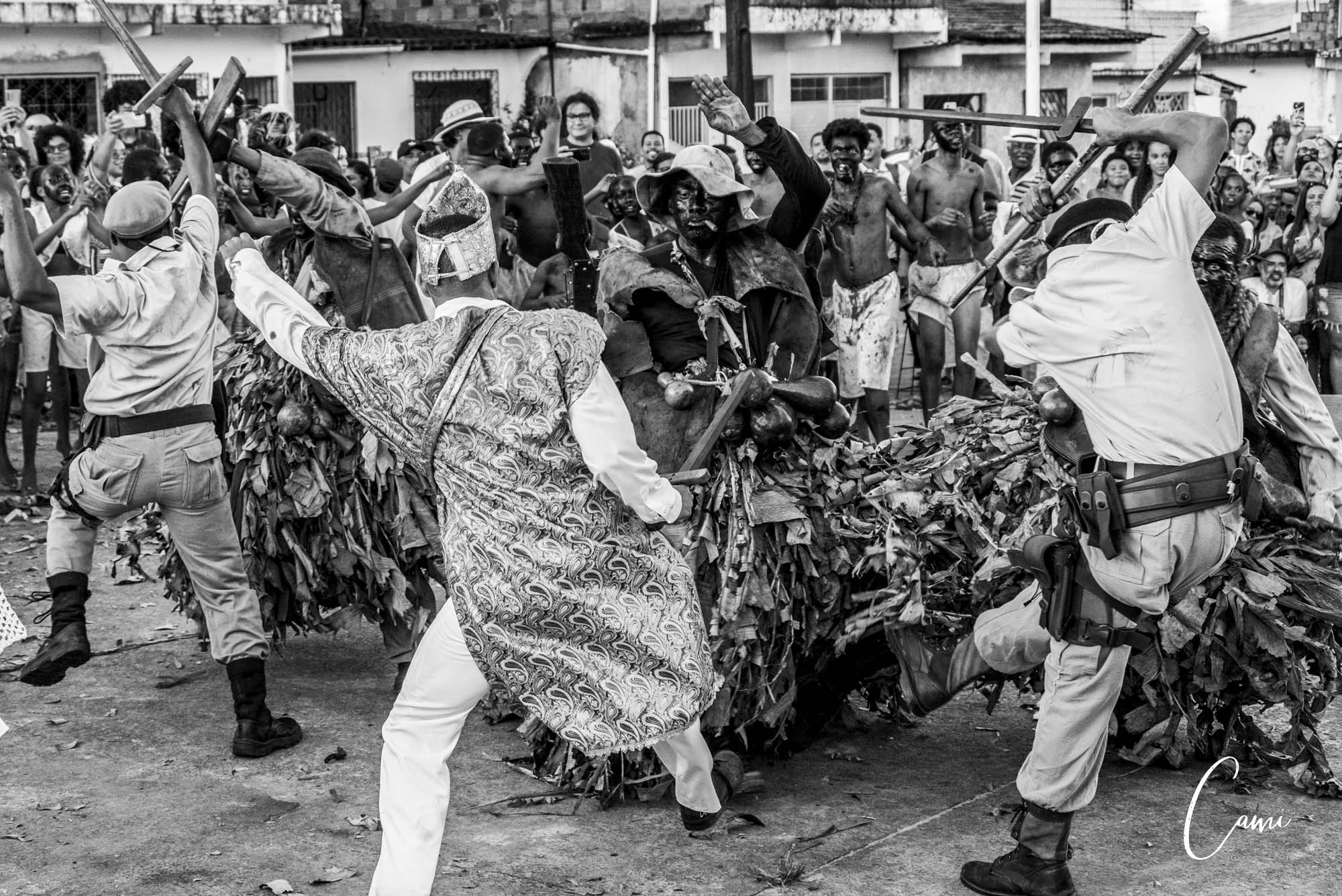Until it’s time to start staging this popular opera, in the RecĂ´ncavo Baiano. And while the kids wait for their time to shine, the adults also get ready for the show… The representation of Nego Fugido is performed mostly by men from the fishing and quilombolo community of the Acupe district, the performances always take place on Sundays in July, the month that represents the struggle for independence in Bahia. The performances of Nego Fugido in the streets of Acupe build a narrative throughout the month about the story told.